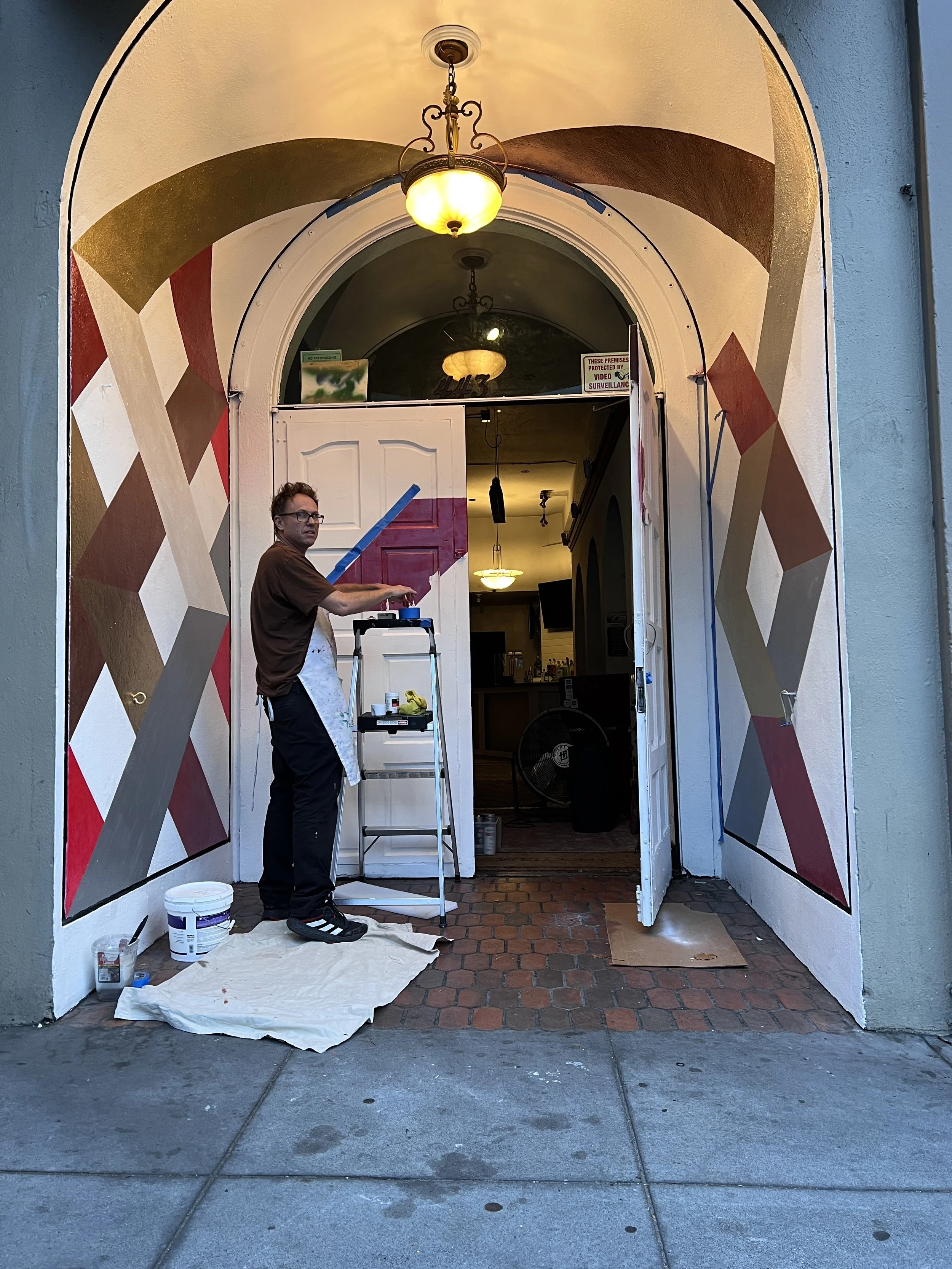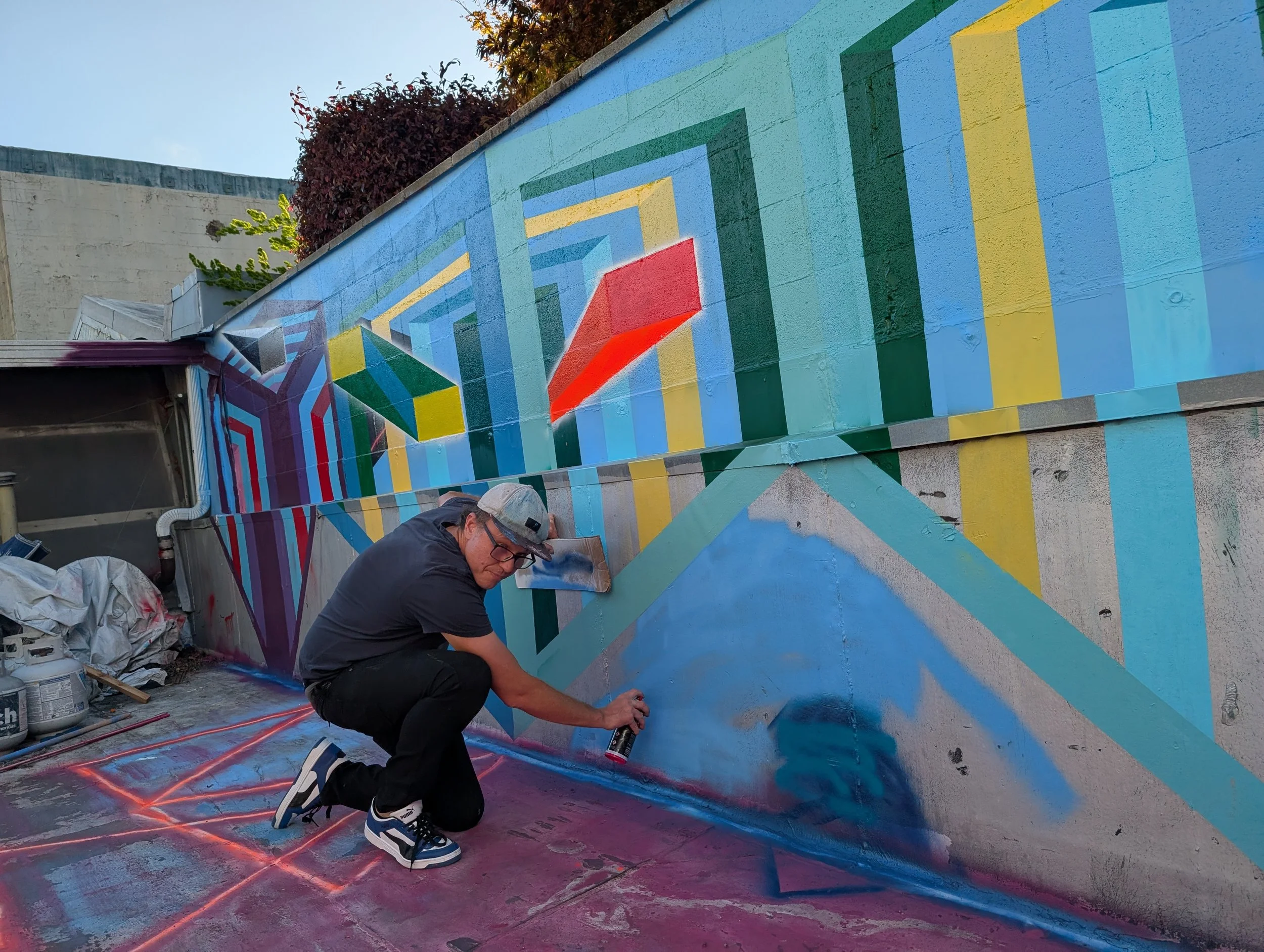 Russell’s technique developed over 20 doing gallery shows exploring artistic movements of hard edge abstraction, op art, and Light and Space. enable him to create unique mural and bring new life with depth, and visual deliciousness to a space.